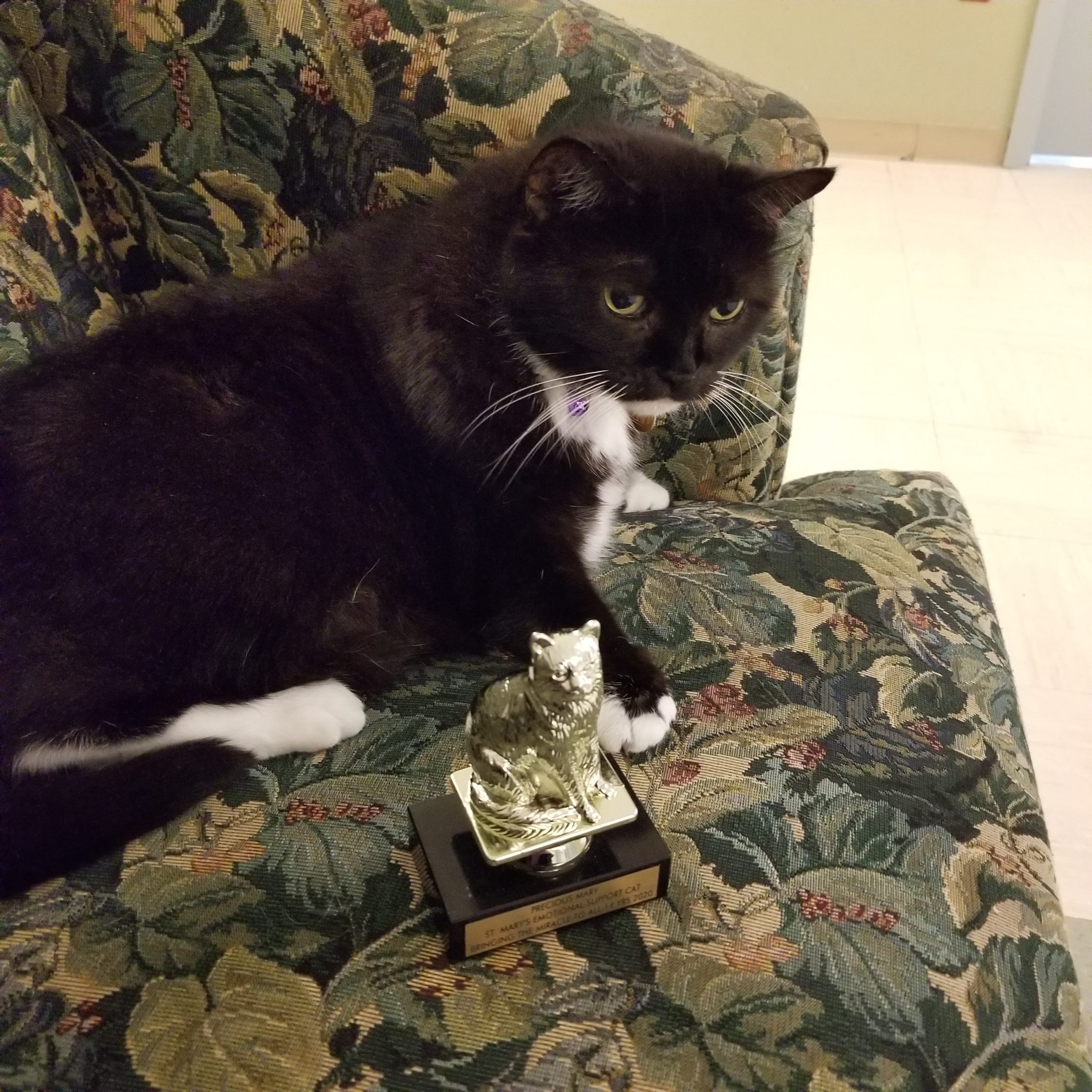 Precious Mary our four-legged therapy cat who has served our institution for the last 14 years is also taking her retirement and spending more time bathing in the sun by the window in the company of Sandy. They have been inseparable since Sandy arrived at St. Mary’s, therefore Precious will be spending her retirement with Sandy Geller her faithful and trusting caretaker. We could not be happier for Sandy and Precious best of luck and many blessings… St. Mary’s Staff and residents will miss you both.